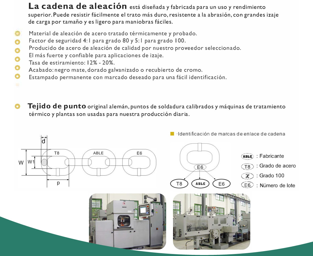 Cadena de grado 70 y atada de grado 80